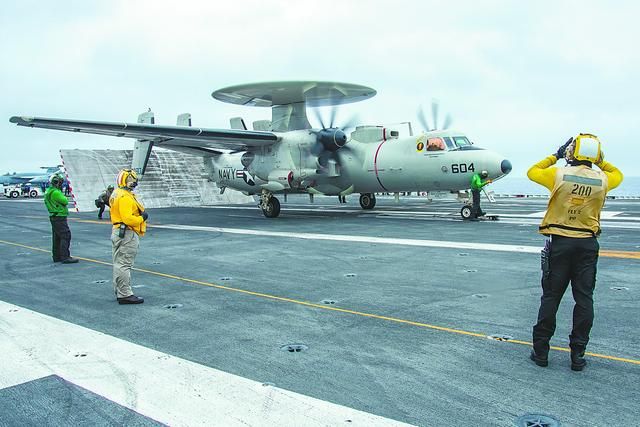 美第七舰队30日发布的图片显示,美预警机在航母上弹射起飞。