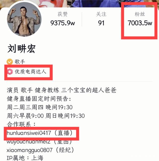 值得一提的是,刘畊宏在抖音平台的官方认证中多出了一条“优质电商达人”认证,简介中也增加了专门负责直播的联系方式。