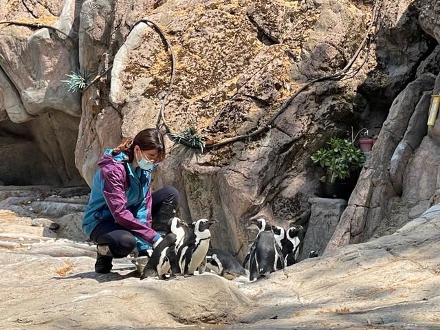 一个月前,因为原有的企鹅饲养员被封控,胡迪从大象馆调到了企鹅馆。初来乍到,企鹅们并不待见她,还会用嘴啄她。相伴一个月后,胡迪用自己的耐心和爱心,赢得了它们的信任——企鹅开始主动靠近她,围着她转。