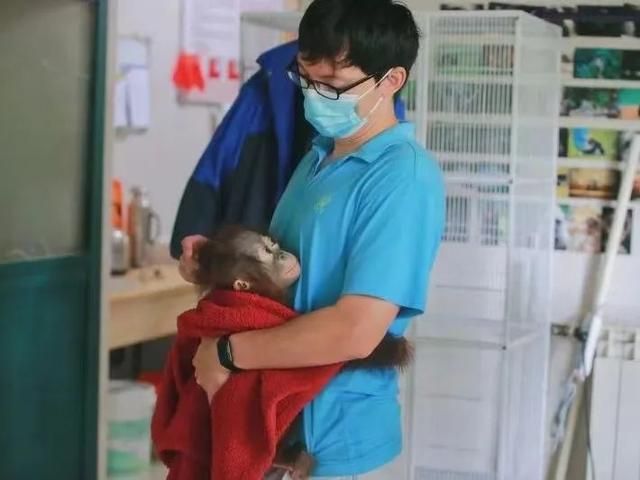 小猩猩抱着林俊撒娇。受访者供图