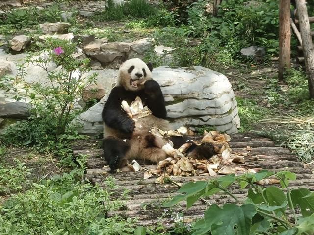 在大熊猫馆后面,有一块自留地,种着苦竹。饲养员每天砍六七根竹子,锯成几段,再往地上用力一敲,便能得到裂开的竹片。清洗干净后,这些竹片会被送到熊猫的餐桌上,保证它们每日的“摄竹量”。