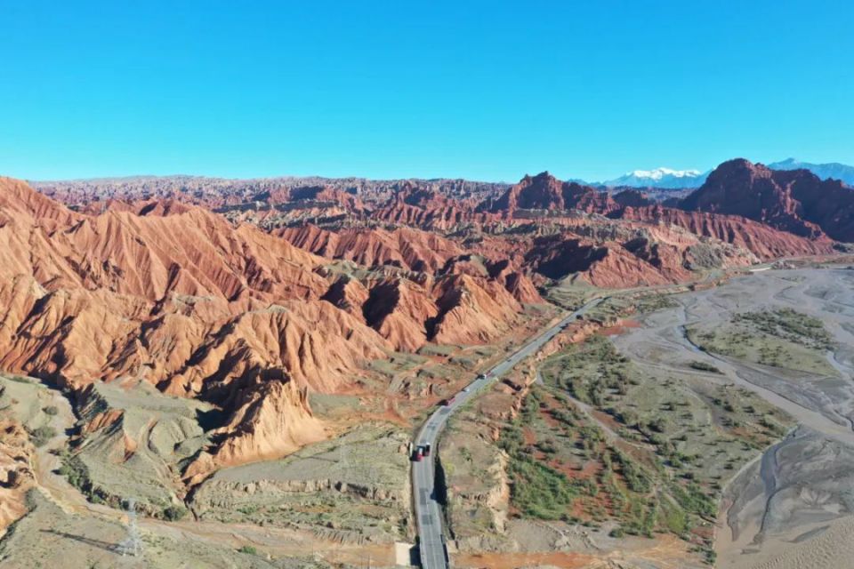 独库公路沿途集天山胜景、河湖美景、乡村逸景、峡谷奇景、雅丹怪景五景为一体,天空蓝、戈壁黄、草原绿、河湖青、雅丹红五色于一处,被誉为“中国最美公路”之一。