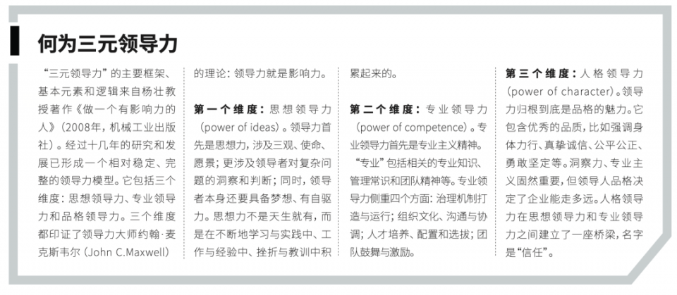 面对百年不遇的疫情和严重的VUCA环境挑战, 中国企业家们将如何应对?我在北大国家发展研究院(BiMBA)讲授领导力课程已超过二十年,并创建了“三元领导力”这个领导力模型,它包括思想领导力、专业领导力和品格领导力三个维度。了解企业家、经理人的使命、愿景、价值观,专业主义精神,人格特质是“三元领导力”研究的基石,因此在以往数年间,我们已做过数次相关调研。在今天复杂的VUCA环境下,我更渴望了解中国企业家、管理者的领导力特质,及影响这些特质的重要社会人文因素——他们身上具备什么样的人格特质?追求什么样的价值观?他们如何洞察所面临的国内国外经营环境?他们又将如何面对不确定性和组织变革?
