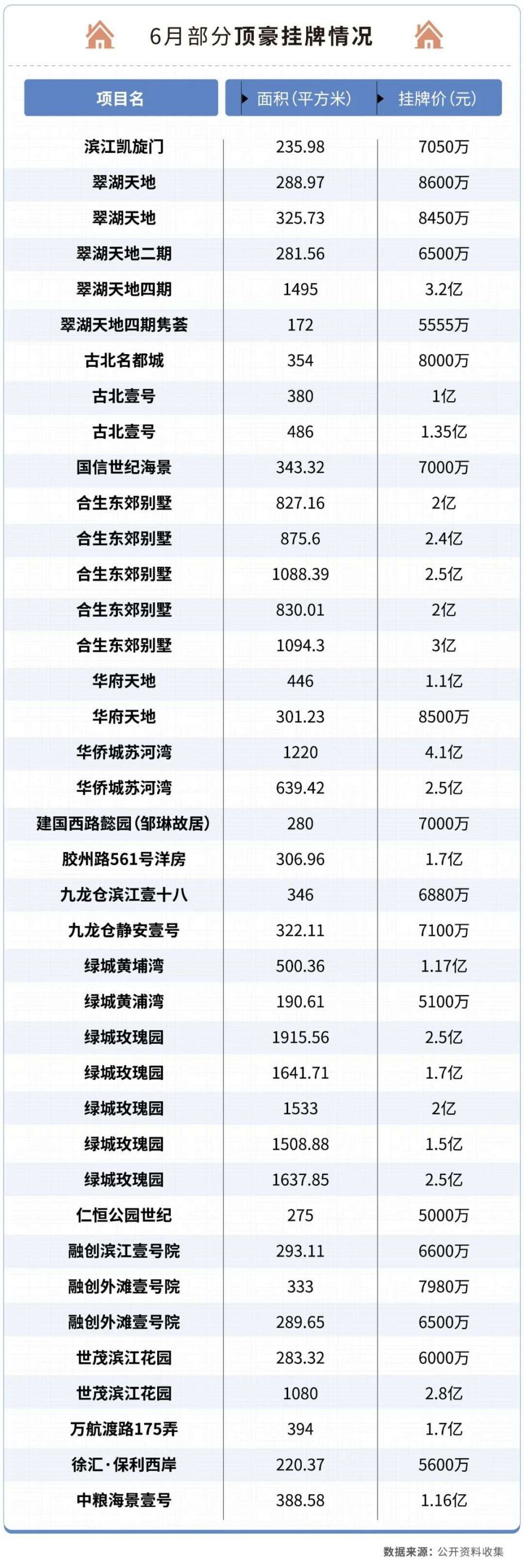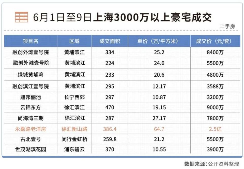 仅6月初,上海已经有超过30套总价1亿以上的豪宅二手房源新挂牌上市。