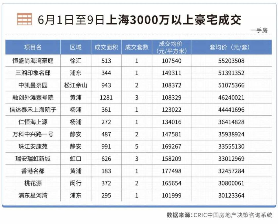 根据我们的不完全统计,6月初,上海平均每天就有3.7套总价3000万以上的豪宅(含新房和二手房)成交。