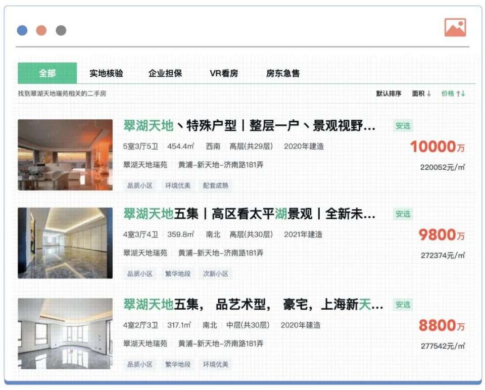 最新挂牌的一套豪宅房源,位于上海的黄金地段新天地。翠湖天地最新一期翠湖五集一套还在5年限售期内的房源,被标上1.25亿元的总价挂牌上市,单价近36万元/平方米。