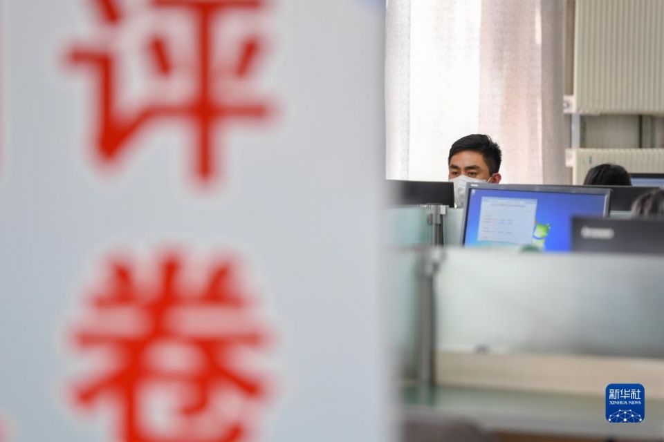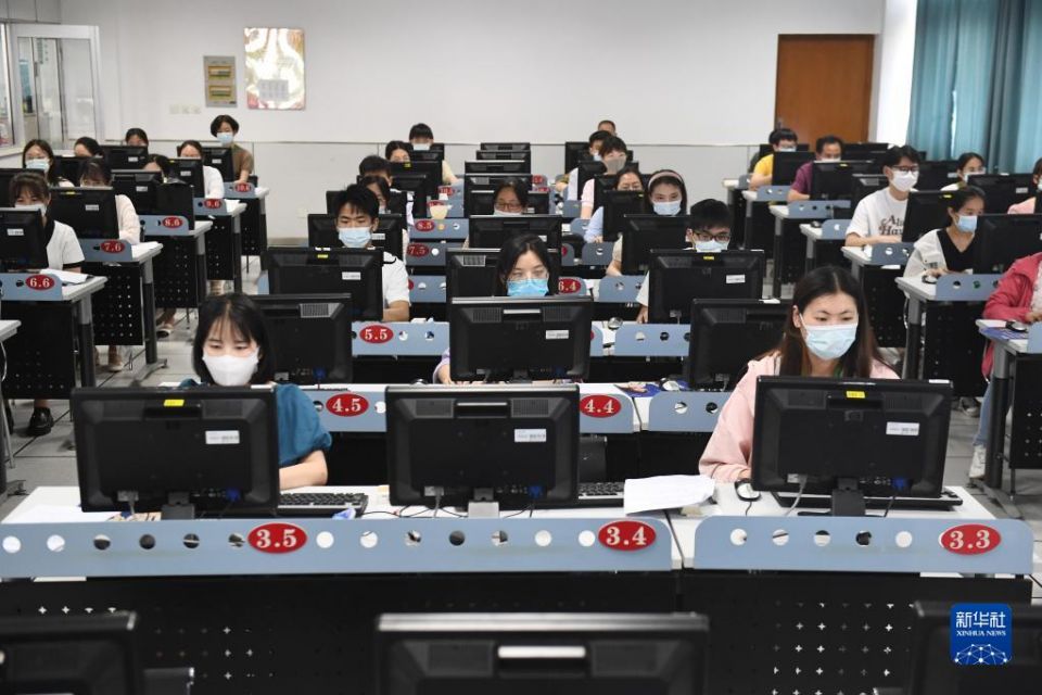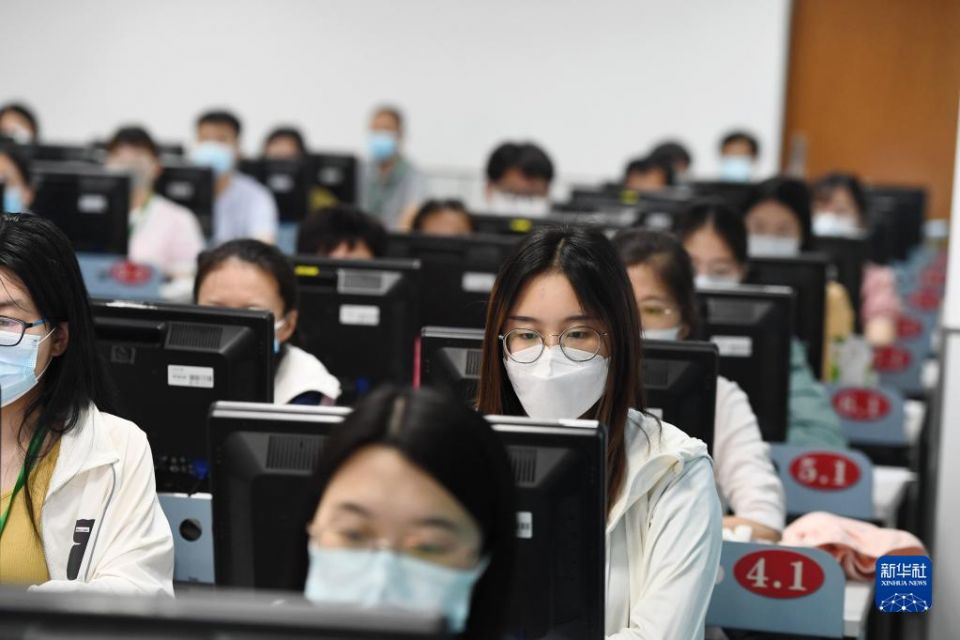 6月14日,在位于吉林长春的东北师范大学高考网上评卷点,工作人员在评卷。据了解,2022年吉林省高考评卷工作全部采用电子扫描、网上评卷方式进行。新华社记者 张楠 摄