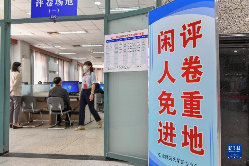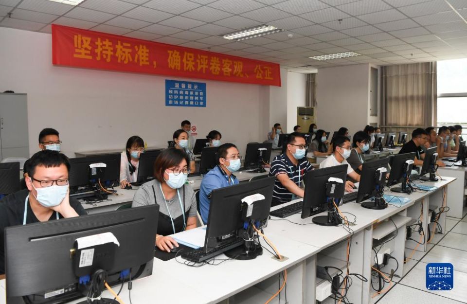 6月14日,评卷教师在位于西南大学的重庆市高考评卷场阅卷。据了解,2022年重庆市参加全国统一高考人数约18.4万人,试卷数量约110万份,全市统一选派评卷教师1300余人参加评卷工作。新华社记者 王全超 摄