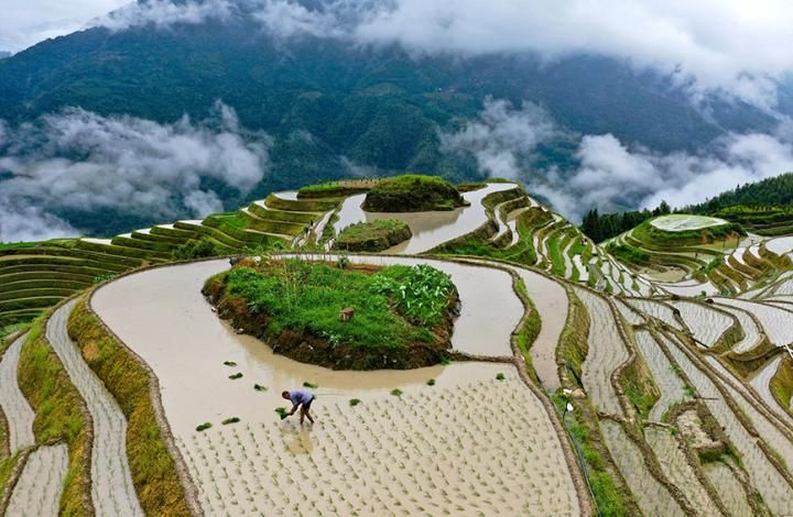 首页 广西龙胜:梯田耕种忙 2022-06-20 08:39:18 分享 夏至将至,广西桂林市龙胜各族自治县龙脊镇各村寨进入农忙时节,村民们抢抓农时,在梯田上开展耙田、梳秧、插秧等农活,田间地头一派繁忙景象。潘志祥摄(人民图片网)
