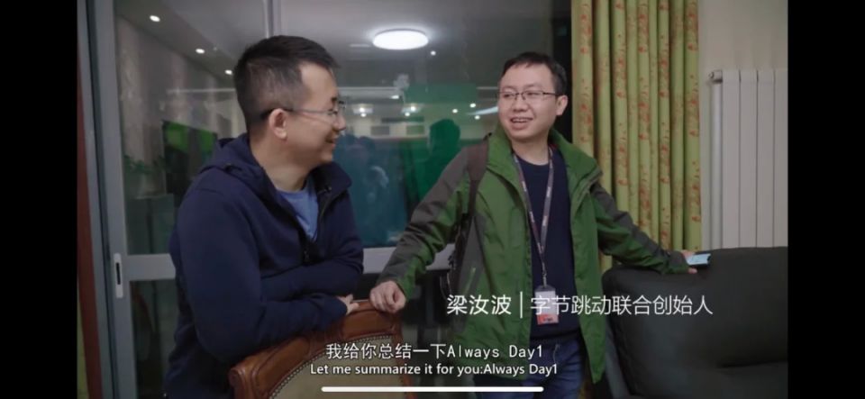 张一鸣先到,他对随行人员说,梁汝波来了吗?随后的镜头给到梁汝波,他白白胖胖的圆脸挂着笑容,“我去过很多创业团队,很多都有蟑螂,这里没有蟑螂,超出我预期了。”