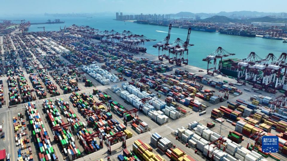 科创 繁忙航线:平均每两分钟就有金砖国家货物装卸的青岛港 2022-06-22 08:37:12 分享 繁忙的山东港口青岛港前湾港区,集装箱货轮在装卸集装箱(6月15日摄,无人机照片)。在繁忙的山东港口青岛港,几乎每天都有来往于金砖国家港口的货轮在此装卸,平均每两分钟就会有一单金砖国家货物在这里卸下或装运发往海外港口。 青岛海关数据显示,今年1月至5月,青岛直达金砖国家的航线共完成箱量83万标箱,同比增长12%,其中出口量增长26.1%。新华社记者 李紫恒 摄