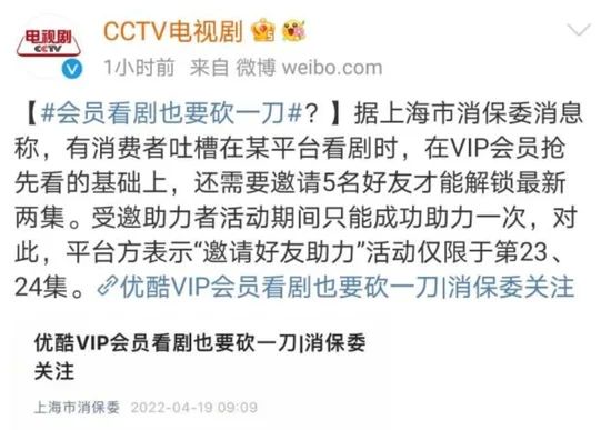 官媒方面,“CCTV电视剧”也在微博上转发了上海市消保委的有关文章,对这种“超前点播”的变种玩法给予了敲打警告。