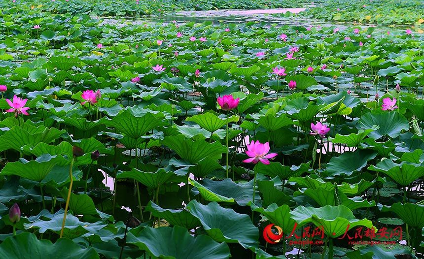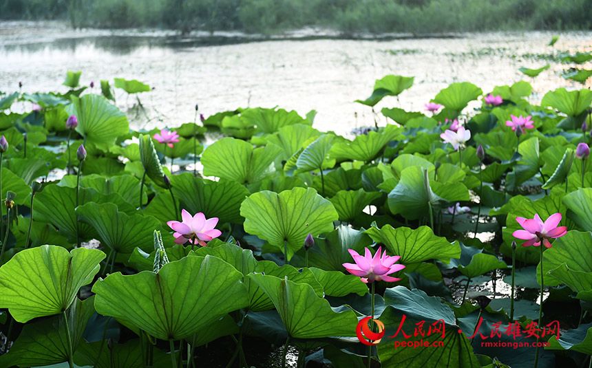 人民网雄安6月22日电(施云娟、宋烨文)“接天莲叶无穷碧,映日荷花别样红。”进入夏至,天气更炎热了,荷花也进入了盛开期。