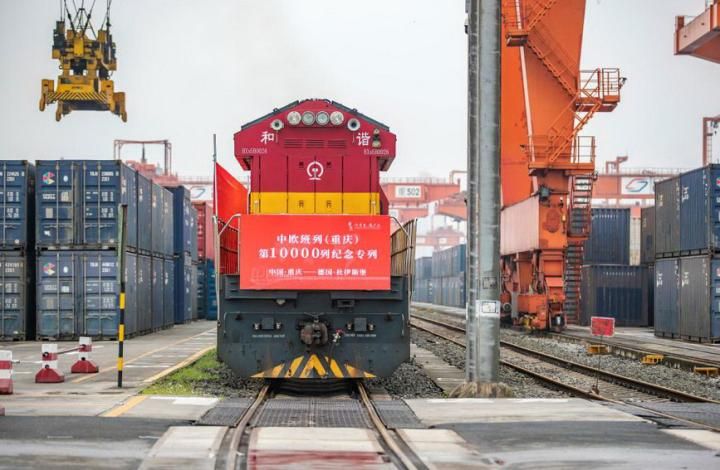 首页 我国首条中欧班列线路开行破万列 2022-06-24 08:34:49 分享 6月23日,第10000列中欧班列(重庆)满载着100个标箱的电子产品、机械零件、日用百货等货物,从重庆团结村中心站顺利驶出,一路向西,奔赴一万余公里外的德国杜伊斯堡。重庆成为全国首个累计重箱折列开行量突破10000列的中欧班列开行城市。中欧班列(重庆)是我国首条中欧班列线路,2011年3月19日正式开通运营。目前,中欧班列(重庆)已拥有稳定运行线路近40条,可实现辐射国内59个铁路站点和29个港口,通达亚欧近百个城市。新华社记者 黄伟 摄