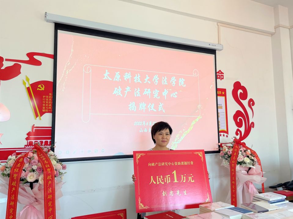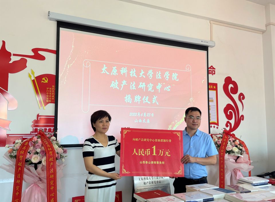 2022年6月23日上午,太原科技大学破产法研究中心揭牌仪式在太原科技大学法学院成功举行。太原科技大学党委副书记杨全平,山西省高级人民法院原审判委员会专职委员、一级高级法官仇拉锁,山西省法学会破产与重组研究会会长、山西财经大学法学院教授郗伟明,山西省律师协会副会长、山西省破产管理人协会秘书长王志萍,太原科技大学法学院院长乔中国,太原科技大学法学院副院长段丽,太原科技大学法学院党总支副书记吴玉霞,太原科技大学破产法研究中心主任卫霞以及相关单位领导、专家学者共20余人现场出席揭牌仪式,仪式由法学院副院长段丽主持。