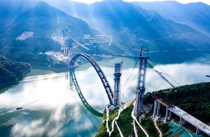 科创 广西河池:天峨龙滩特大桥建设正酣 2022-06-27 08:17:11 分享 天峨龙滩特大桥是南天高速项目的控制性工程,位于广西河池市天峨县龙滩大坝上游6公里处,横跨红水河,全长2488.55米,主桥为跨径600米的上承式劲性骨架混凝土拱桥,是在建世界最大跨径拱桥。周恩革摄(人民图片网)