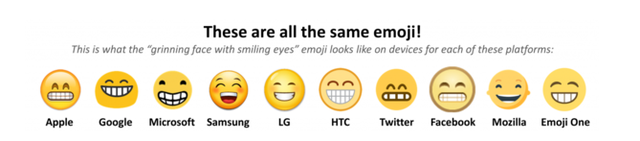 此外,同一表情符号在不同手机设备中也会存在显示差异,如苹果IOS系统中的“尴尬微笑”表情在安卓系统中显示为“开心大笑”,极易造成双方理解误差。