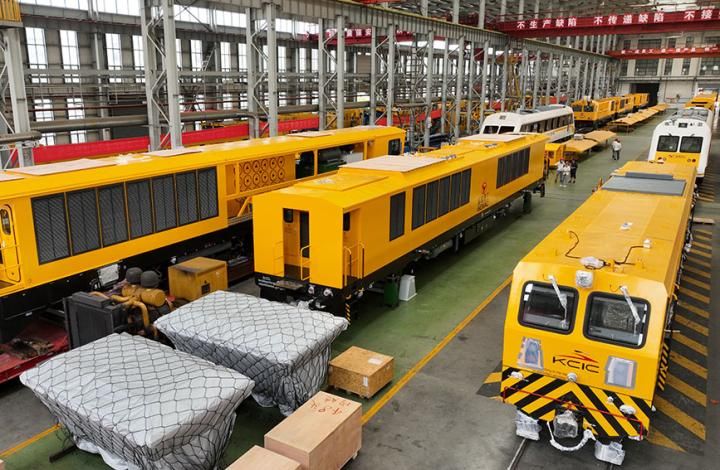 首页 湖北襄阳:轨道工程装备出口 助力雅万高铁建设 2022-07-03 08:48:56 分享 2022年7月2日,湖北襄阳国家高新技术产业开发区,金鹰重工为雅万高铁生产的3台套轨道工程机械装备在吊装出厂,将通过海运发往印度尼西亚雅加 达,用 于雅万高铁新线铺轨建设。雅万高铁是共建“一带一路”倡议以及中国和印尼务实合作的标志性项目,全长142公里。王虎摄(人民图片网)