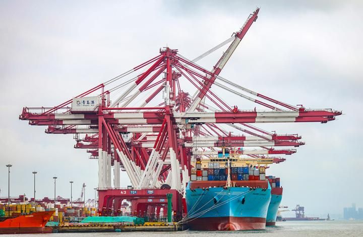 科创 山东青岛港口作业忙 2022-07-03 09:01:05 分享 2022年7月2日,在山东港口青岛港前湾集装箱码头,一艘艘货轮在码头的泊位上有序装卸集装箱,到处一派繁忙景象。吴绍洋摄(人民图片网)