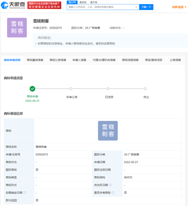 首页 快讯!雪糕刺客商标被抢注 2022-07-05 06:34:35 分享 本文转自:中国经济周刊中国经济周刊-经济网讯 天眼查App显示,近日,“雪糕刺客”商标被自然人李某申请注册,国际分类为广告销售,当前商标进度为申请中。据悉,雪糕刺客往往用来形容“天价雪糕”,指那些平平无奇躲在冰箱里,却在结账时用价格刺你一剑、给出“致命一击”的雪糕。新媒体编辑:何颖曦