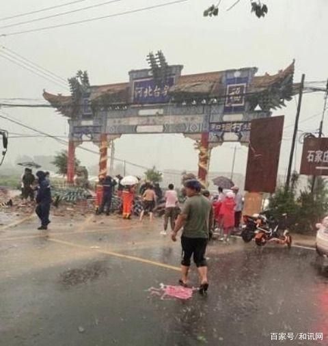 7月2日傍晚18时,因突发极端暴雨天气,石家庄市鹿泉区台头村村北牌楼顶冠(钢筋水泥砖瓦混合材质)从十二米处发生坠落,造成正在避雨的9名群众被压。