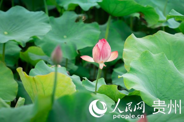 蓬莱村“蘑力小镇”景区内盛开的荷花。人民网 涂敏摄