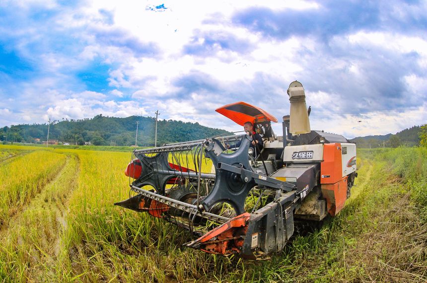 首页 江西全南:早稻喜开镰 2022-07-09 07:52:03 分享 全南县陂头镇早稻成熟,收割机在田间忙碌穿梭。李国强摄人民网南昌7月8日电 7月7日,江西省赣州市全南县陂头镇早稻成熟,收割机在田间忙碌穿梭。近年来,全南县采取“村集体+合作社+农户”模式,提高水稻生产效率,积极落实奖补政策,激励农民种粮积极性,稳定粮食生产,守住百姓“米袋子”。(毛思远、李凡钦)