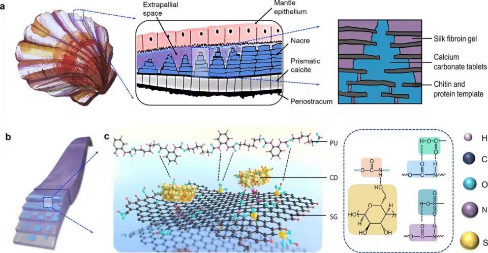 “我们发 现,自然界中的珍珠层在无机物含量达到90%以上程度的时候依然能够同时保持强度和韧性。”据王宇嫣介绍,团队仿照珍珠层的微观梯度结构,将环糊精修饰的 磺化石墨烯纳米片层以层层抽滤的方式,逐层递增组装到聚氨酯胶乳中,创造了有序的浓度梯度的纳米复合材料。“这样的制备方法不仅有效解决了功能填料高填充 的难题,并且过程简单,有利于大规模制备。”