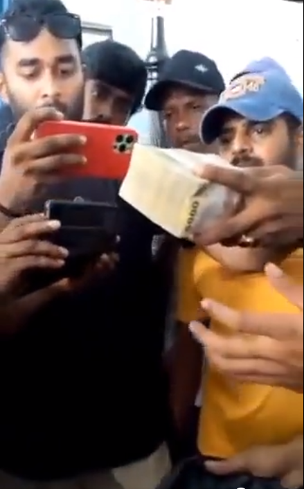 《每日镜报》称,社交媒体上流传的一段视频显示,抗议者们正在清点找到的纸币。