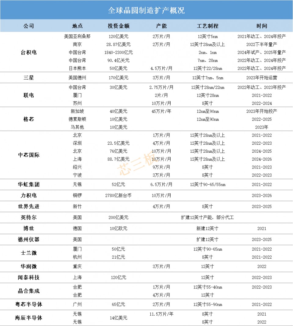 全球17家公司33个新增或扩产项目汇总,图源丨芯三板[21]