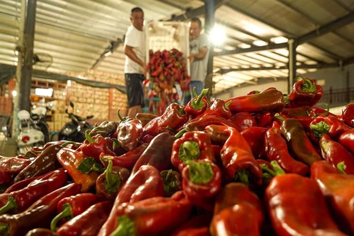 首页 安徽五河:辣椒红 产业火 2022-07-13 08:54:05 分享 人民网五河7月12日电 7月10日,安徽省蚌埠市五河县朱顶镇陈台村的辣椒种植基地里,工人们正忙着在大棚内采摘、分捡、打包辣椒,忙碌的场景构成了一幅美丽的丰收图画。种植基地相关负责人介绍,近年来,基地流转近2300亩土地用于泡椒种植,搭建近4000个 大棚,辐射带动周边10多个村镇进行辣椒种植,周边百余名村民也来基地务工。今年市场行情较好,泡椒价格从去年的0.8元每斤提高至2.4元,亩均接近 5000元,实现村民致富增收。(胡雨松、李向前)