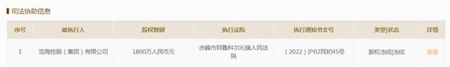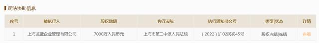 中 新经纬7月12日电 企业信用信息公示系统网站显示,上海览盛企业管理有限公司(下称“上海览盛”)持有海南观澜湖华谊冯小刚文化旅游实业有限公司7000万元股权、览海控股 (集团)有限公司(下称“览海控股”)持有内蒙古中瀛天山能源开发有限公司1800万元股权近日被申请冻结,合计8800万元股权。