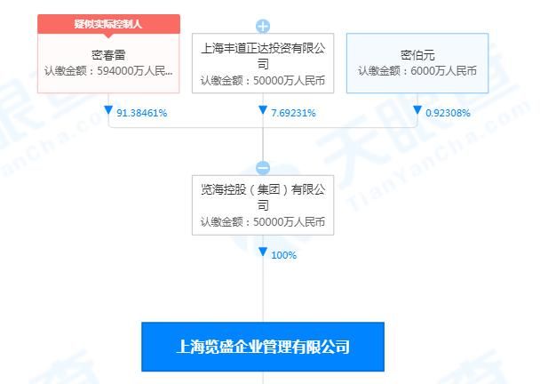 天眼查APP数据还显示,密春雷持有览海控股91.38%股权,为览海控股实际控制人、法定代表人;上海览盛为览海控股100%持股公司。