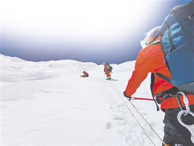 但还是碰上了意外。从8300米再往上走,积雪有五六十厘米深,沿路安全绳都被雪埋了。安全绳是登顶的生命绳,大家必须把绳子拽出来,抖掉冰,再一点点前进。到达海拔8800米处,比原计划晚了三个小时。