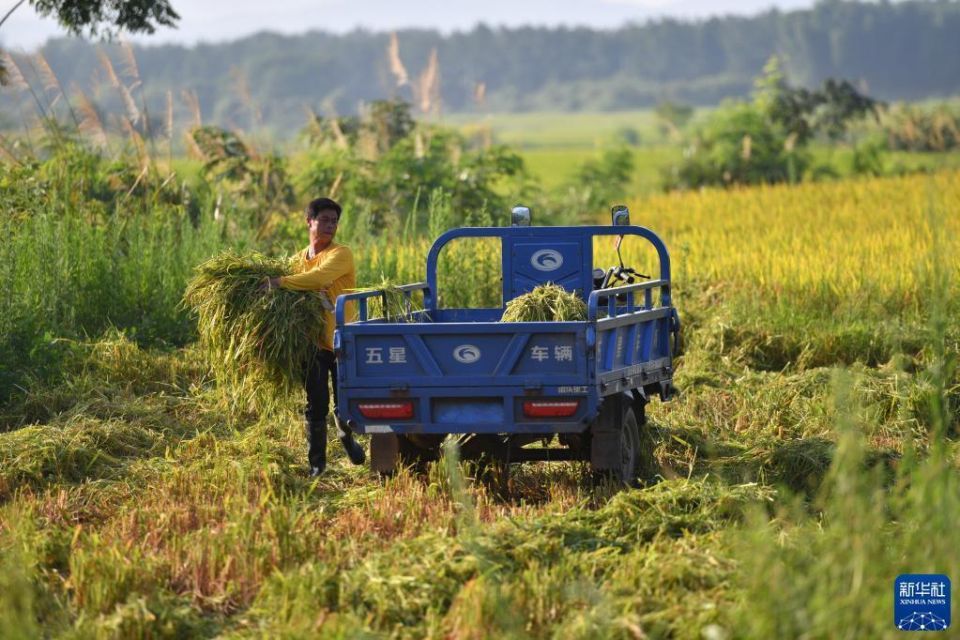 首页 “双抢”农事忙 2022-07-15 09:00:13 分享 7月14日,在东安县井头圩镇芭蕉村,农民将收割后的稻草整理装车。盛夏时节,湖南省永州市东安县的27万余亩早稻正值收割期,当地农民利用晴好天气抢收早稻,同时翻整田地、准备晚稻的抢栽工作,田间地头一派繁忙景象。新华社记者 陈振海 摄