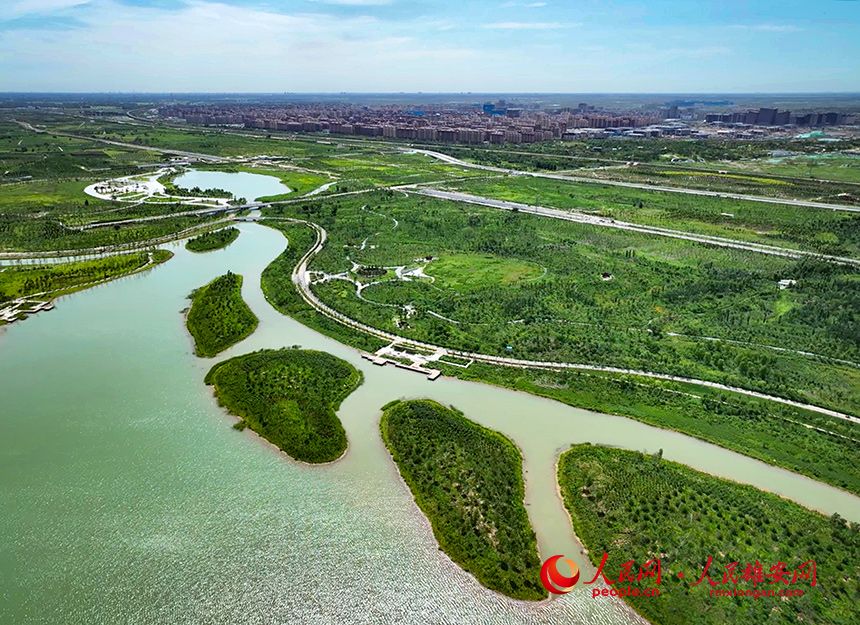 人民网雄安7月15日电 (宋烨文)七月的雄安,天蓝地绿水清,让人心旷神怡。跨过容易线,雄安郊野公园西侧的城市林带在阳光照射下,生机勃勃。