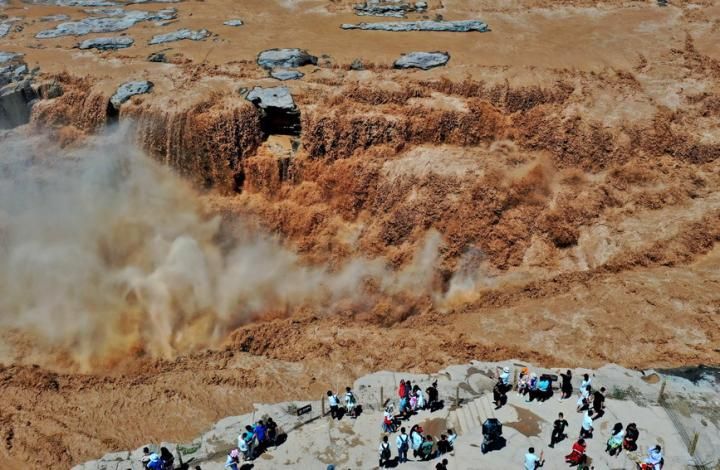 首页 黄河壶口瀑布迎客来 2022-07-19 08:08:09 分享 2022年7月17日,游客在山西吉县黄河壶口瀑布旅游区游览观瀑。近日,受上游降雨增多影响,黄河干流晋陕峡谷水量增大,壶口瀑布再现壮美瀑布群景观。吕桂明摄(人民图片网)