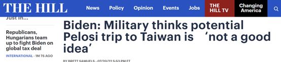 【环球网报道 记者 张晓雅】据美国《国会山报》消息,美国总统拜登当地时间20日就“佩洛西访问台湾计划”表态,他表示,美国军方对有关佩洛西赴台计划的报道表示担忧。中国外交部发言人20日明确表示,中方要求美方不得安排佩洛西众议长访台。