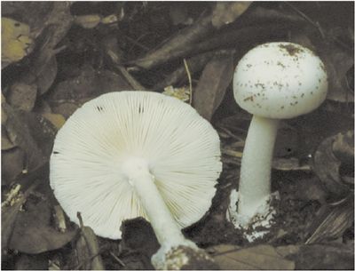 致命鹅膏因整体白色,故名“白毒伞”,其中的鹅膏毒肽可对人体肝、肾细胞产生严重损害,导致人体各器官功能衰竭。这种毒素耐高温、酸碱和盐,常规的烹饪方法不能破坏其毒性,如救治不及时,食用50克即可致死。