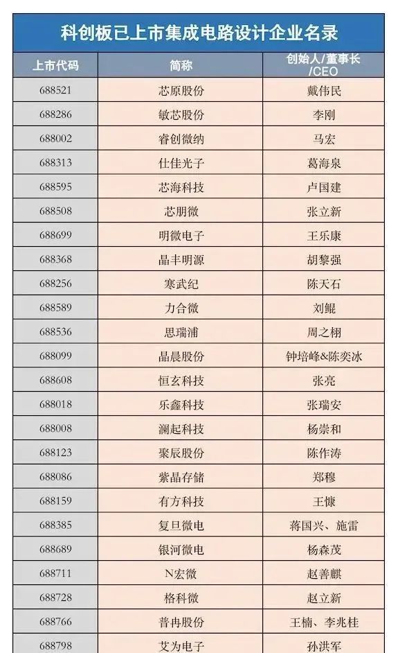 图:科创板已上市集成电路设计企业
