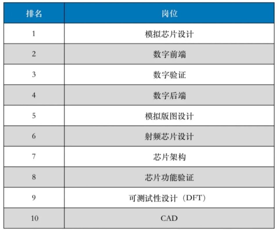 图:集成电路设计业TOP 10紧缺岗位