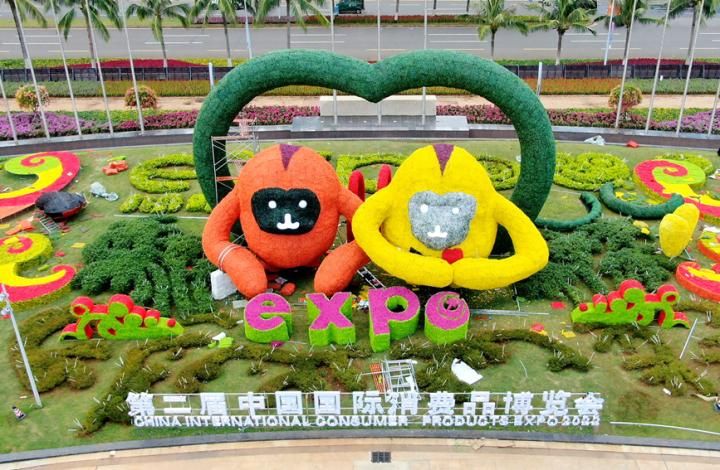 人民网海口7月21日电 (符武平)2022年第二届中国国际消费品博览会(以下简称消博会)将于7月25日至30日在海南省海口市举办。7月21日,记者在海南国际会展中心看到,展馆里一派忙碌的景象,各展区主体结构搭建完成,工人们正在装饰展台。