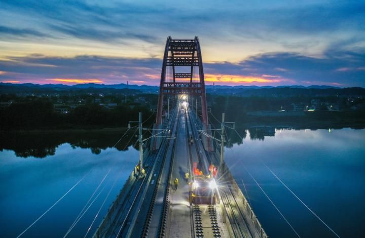 首页 常益长高铁全线轨道贯通 2022-07-24 11:07:37 分享 2022年7月23日,在常(德)益(阳)长(沙)铁路常益段铺轨现场,随着中铁十一局施工人员将最后一对钢轨铺设在线路左线的无砟轨道板上,常益 长铁路 全线轨道贯通。 据了解,常益长铁路线路全长约157公里,设计时速350公里,是国家“八纵八横”高速铁路网的重要组成部分,建成后将实现湖南全省14个市州全部通高铁 的目标。郭立亮摄(人民图片网)