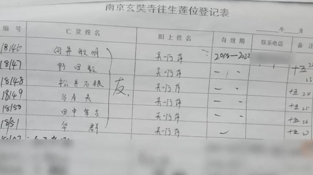 2017 年12月18日,吴啊萍到玄奘寺要求供奉牌位,并在登记表上填写“松井石根、谷寿夫、野田毅、田中军吉、向井敏明、华群(美国人明妮·魏特琳)”6人名 字。当值僧人灵松(1979年9月生,初中辍学)询问被供奉者是其亲属还是朋友,吴啊萍谎称是其朋友。寺庙按照每个牌位每年100元标准、供奉5年共收费 3000元,灵松开具了收据,注明供奉时间“2018—2022”,随后在黄色牌位纸(9×4厘米)上写下标注“友”字的6人名字和“吴啊萍”落款,塑封 后摆放于地藏殿的“往生莲位”区第15排7—12号位,距地面高度约3米。2018年底,玄奘寺对地藏殿进行修缮,陆续将牌位全部撤下。2021年12月 地藏殿修缮完毕后,牌位被摆回原处。