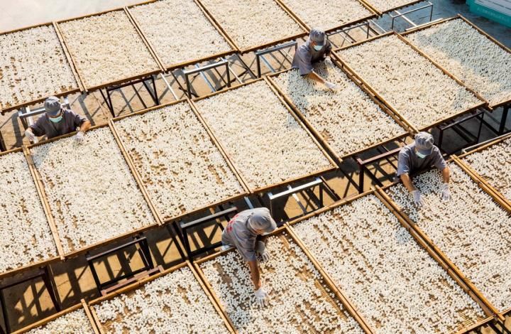 首页 湖北秭归:传统酵母助增收 2022-07-27 13:11:56 分享 湖北秭归传统酵母(俗称小酒曲)是用丁香、肉桂、甘草等几十种中药材加工后与米粉混和,再经过发酵、晒干等几十道工序制成。使用这种酵母生产的米酒、酿出的米醋风味独特,倍受市场青睐。在秭归县归州镇向家湾村,当地企业坚守传统工艺生产酵母,并通过百余家电商和个体经营户进行销售。一颗颗白色的酵母,从长江三峡的大山深处走向全国及海外市场,年创收近千万元。同时,企业吸纳50多名工人就业,带动周边30多户村民致富增收。新华社发(聂爽 摄)