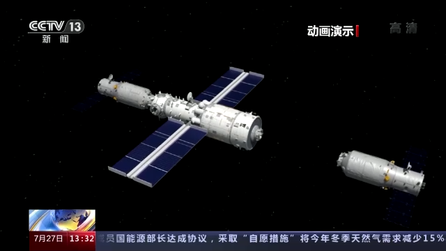 航天科技集团五院天舟三号货运飞船系统总体主管设计师 潘威振:随着空间站的运行,它速度会变慢,轨道会逐渐降低。这种情况就需要对它的轨道进行调整,维持轨道高度,这时候就需要利用发动机来给它加速。