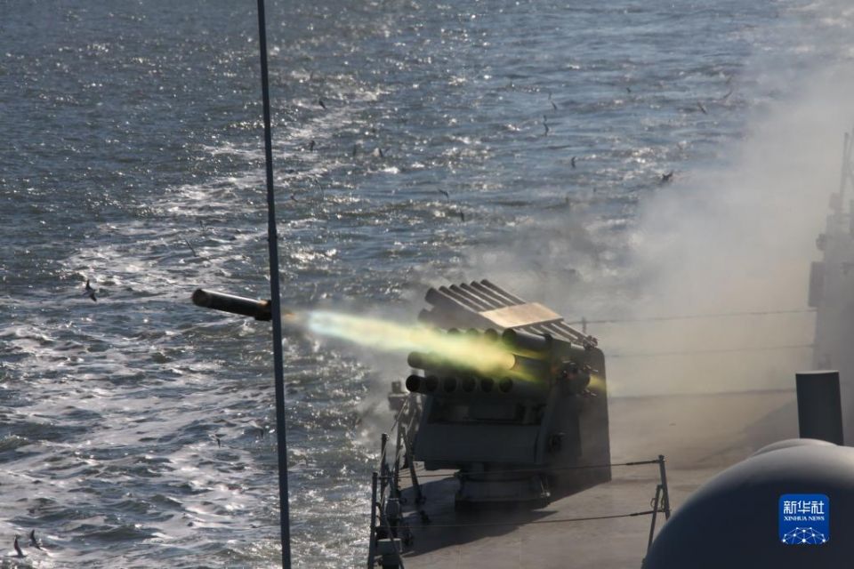 海军某试验训练区在渤海某海域组织某型武器装备实弹射击试验鉴定(2016年11月8日摄)。新华社发(王雷 摄)