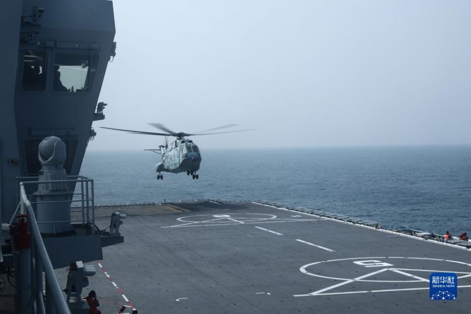 海军某试验训练区在海上试验场开展某新型舰艇舰机适配试验(2020年11月2日摄)。新华社发(张志丹 摄)