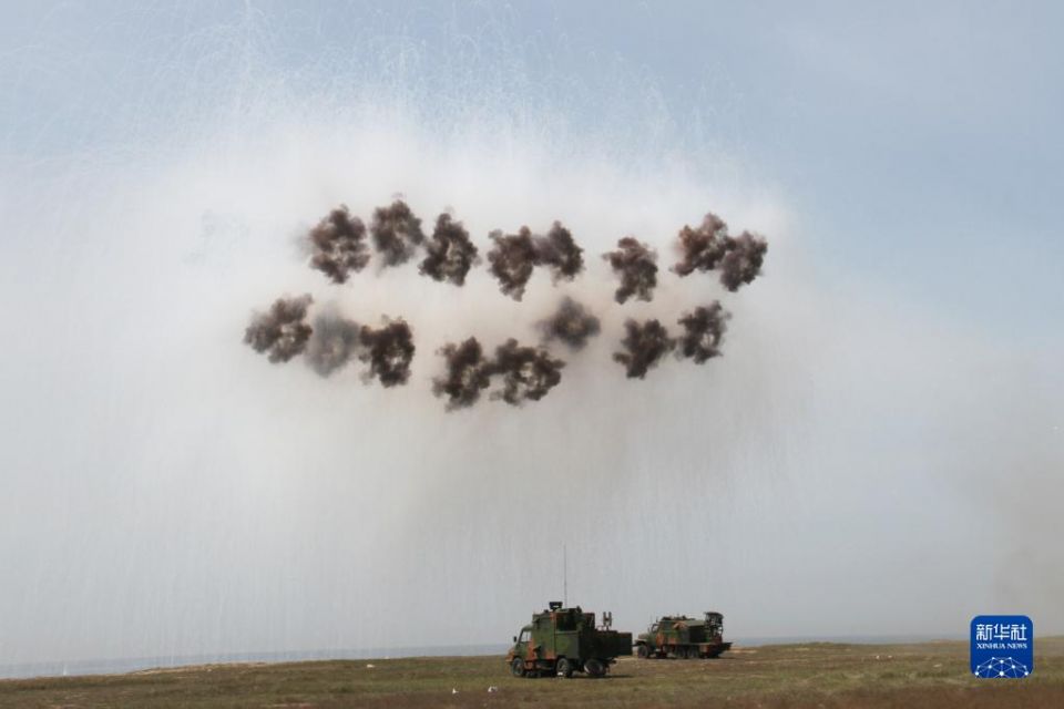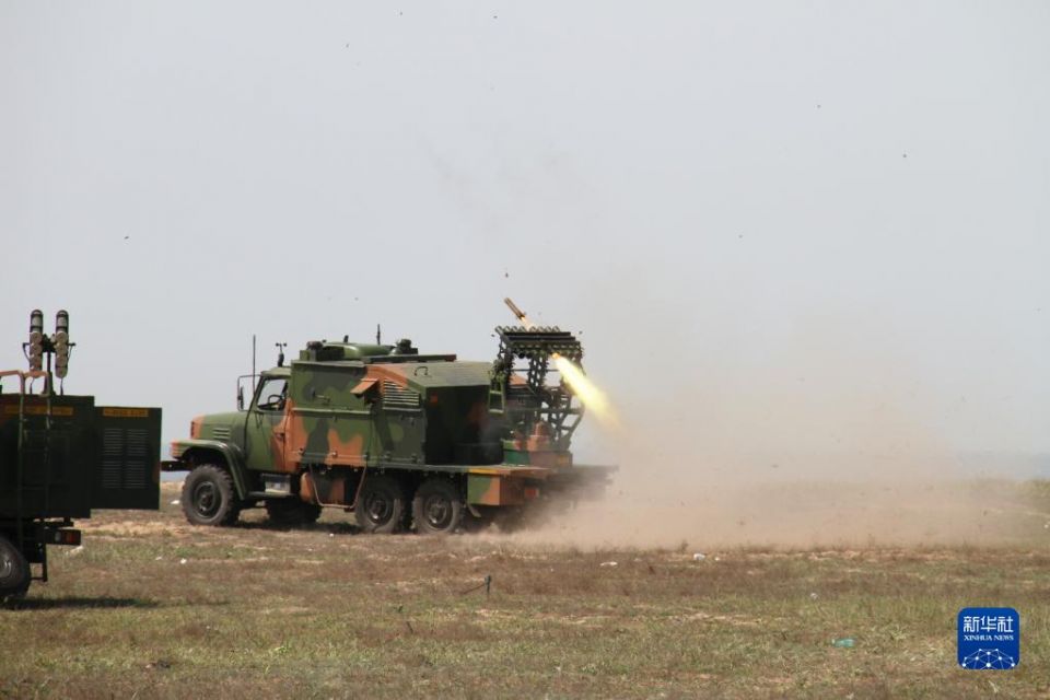 海军某试验训练区组织驻训演练,岸基兵力发射光电干扰弹进行火力打击(2014年5月17日摄)。新华社发(孔一鸣 摄)