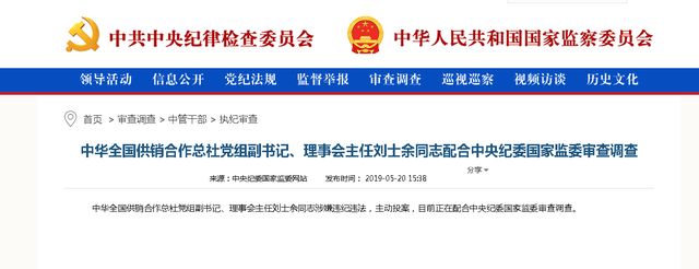 当年10月5日,中央纪委国家监委通报称,对刘士余严重违纪违法问题进行了立案审查调查。